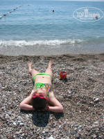 Пляж большой, просторный, песочный. Хороший заход в море - мелкая галька. Есть бар на пляже (пиво и безалкогольные напитки). Единственный минус - нет туалета на пляже (для маленьких детей он был бы там очень даже не лишним).