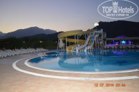 Всем привет!!!Были в этом отеле с 8.07 по 18.07.2014 г. всей семьей.Отель не 4 звезды.а 3 + (так даже сам персонал говорит ) За номер пришлось доплатить,т.к. мы приехали в 9м часу утра,а заселение строго в 14.00.Жили в главном здании,вид из номера на горы.Убирались каждый день.Отель неплохой,территория очень ухоженная,есть мини-зоопарк.Бассейны детям тоже очень понравились,больше всего из-за горок.А вот пляж....ОЧЕНЬ маленький,мы загорали на камнях,т.к. не могли рано приходить и занимать лежаки (дети поспать хотели)Бара там практически нет.Я не очень притязательная и не привередливая,но даже мне это не понравилось.
