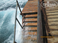 Многие пишут, понтон длинный и ужасный. Я могу сказать, что не так уже и далеко идти. 1-2 раза в день можно и прогуляться. Хотя состояние понтона вы сможете оценить сами по моим фото. Само море в этих краях не спокойное, так как сильный ветер. Но из 7 дней только 2 было таких, что мы не рискнули купаться.