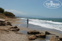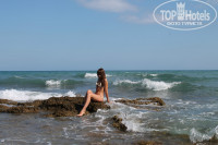 По поводу моря – на Крите все пляжи в муниципальной собственности и у отелей нет собственных пляжей, то есть вы можете купаться и загорать на любом из пляжей. Мы обычно ходили на песчаный пляж (идти направо от отеля), он не оборудован зонтиками и шезлонгами, мы купили пару пляжных ковриков, на которых собственно и загорали. Слева от отеля есть пляж с шезлонгами и зонтами (рядом с отелем Эль Греко). Аренда, если не ошибаюсь, пять или шесть евро в день. Море изумительно чистое, живности, кроме мелких рыбешек в нем нет. Волны были практически каждый день, как я поняла, в это время сезон ветров на Крите и море редко когда бывает спокойным. Купались в волнах, я не особый любитель плавать на глубину, мне этот фактор не особо мешал))) Есть в вышенаписанном положительный момент – бриз прекрасно освежал, и на пляже было комфортно и совсем не жарко.