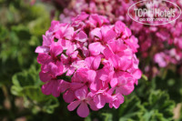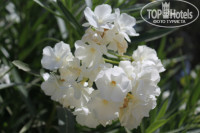 На территории отеля очень мило, много цветов, пальм, оливковые деревья, олеандры, красивые хвойные кустики, альпийские горки, необыкновенно красиво и уютно.