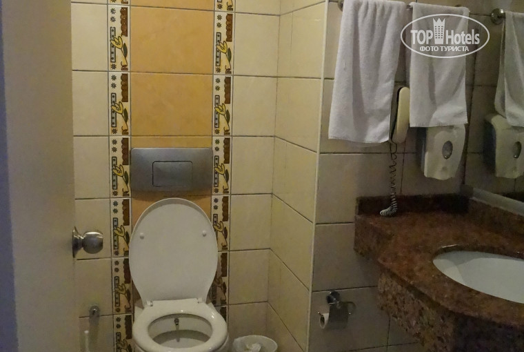 Номер. Номер достался на втором этаже (209). Теневая сторона. В номере никогда не было жарко, даже при выключенном кондиционере. Мебель исправная. Единственное, в ванной была дырявая лейка душа, и половина воды била в стену. Из-за этого напор был очень слабый. А когда ближе к концу отдыха заехало много гостей, около 6 вечера мылись с трудом, буквально прижимаясь к стенке. Ну и лужица на полу, как у всех, у нас тоже была :) затирали полотенцем для ног. Еще одно нарекание - это телевизор. Постоянно были проблемы с сигналом. Особенно было обидно, что не смогли посмотреть футбольные матчи. Причем, бывало включишь, он поработает 5 минут и сигнал пропадает.