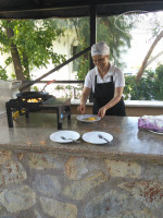 Питание нормальное, если вы не ждете чудес поварского искусства. За неделю 3 раза давали рыбу, а в основном курица во всех видах. Очень вкусная запеченная молодая картошка, кус-кус, запеченные перцы и помидоры. Суп-пюре был 2 раза в день: на обед и ужин. Всегда большой выбор свежей зелени и овощей. Из фруктов дыни, арбузы каждый день. В 17-00 возле бассейна на полдник давали свежую, теплую еще выпечку, каждый день разную. Очень понравились соленые булочки, хрустящие сырные палочки и сладкие бисквитики. В общем, что поесть всегда можно найти. Когда отельный рацион надоедает - можно поужинать в кафе около отеля. Еще один способ разнообразить питание - поездка на экскурсии. Почти все они на целый день и с обедом. Мы брали экскурсию в Фаселис у нашего отельного гида. За двоих отдали 60 долларов. Этот древний город находится в 20 минутах езды от отеля. Там чуть больше 30 минут экскурсия по развалинам во время которой рассказывают много интересного. Потом 2 часа купались в бухте. Нам очень понравилось! Песчаное дно, нет волн, вода очень теплая. После этого отправились на дегустацию в винный погреб, который находится высоко в горах. По пути любовались красивыми горными пейзажами. В погребе пробовали вино их шелковицы, черешни, граната и винограда. Тут же предлагали его купить. Если не было денег с собой, то можно было все взять, а расплатиться в отеле у гида. Народ брал. Там же был магазин с сладостями, чаем, косметикой, оливковым маслом - все можно было попробовать. После винного погреба нас повезли в ресторан на горной реке. На обед был салат, теплая лепешка вместо хлеба, на выбор запеченная форель, куриный шашлык или говяжьи котлетки, на десерт арбуз. Очень вкусно и красиво! Потом дали время посмотреть и сфотографировать фонтаны и плавающую в них форель и развезли по отелям. Вернулись примерно в 15-30 и успели еще на пляж сходить. Поездка получилась очень интересной, легкой и приятной. То, что нужно для того чтобы разнообразить недельный отдых!
