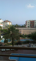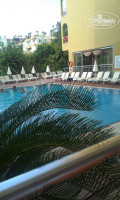Приехали мы около 18:00. Молодой человек на ресепшене разговаривал только на английском, что меня не смутило. Оформил, выдал ключи. Оставаясь еще под впечатлением того, что в 3* все априори должно быть "не очень", я поднималась в номер с мыслями, что что-то определенно должно не работать. Однако, проверив все в номере (чистота, санузел, кондиционер, телевизор, холодильник, электричество), я обрадовалась. Работало все. Комната очень уютная и симпатичная. С большим балконом, вид из которого открывался на бассейн,маленький фонтан, улицу и кусочек моря.