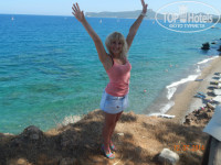 Территория большая, очень уютная, море великолепное, 3 пляжа, мы ходили на ток где заход песчанный, но и там камни попадаются конечно, за скалой пляж "дикий"(ну это мы его так называли) там галька, волны внушительные, такое открытое море))) маленьким детям конечно лучше на другом пляже. По поводу шезлонгов опять же, писали что мест не бывает свободных, мол в 7 утра занимать места нужно...лежат конечно полотенчики нашими соотечественниками постеленные))) но не смотря на это мест полно свободных в любое время. Обязательно купите маску, дочка ее не снимала вообще, полно рыбок разнообразных, крабов и даже, по рассказам плавцов на дальние расстояния, черепах))) Море солеееное, аж горчит, дите у меня плавать научилось в первый же день, попа ток как поплавок торчала))) Очень красивая природа, горы, сосны, пальмы, цикады орут как сумачечие))))) Мы когда только приехали я офигивала от них, в 5 утра начинают, в 22.00 заканчивают) вот прям звон стоит в голове)) Потом привыкли к ним, даже не замечали. Вечером ящерицы начинают по стенам бунгало бегать))) К стати, в номере их нет!!!))) Ну правда, читала мол "хороводами"они бегают, они трусливые, какой там в номер забегать, ни ящериц ни насекомых, не было никого в номере)).