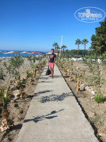 До пляжа организован трансфер, но мы им воспользовались только один раз, предпочитали ходить пешком - расстояние небольшое. Море в октябре оказалось теплым, все дни светило солнце, а вот вечером приходилось одевать джемпер. Сам пляж песочный, встречаются камни. При входе в воду есть камни и крупные валуны.