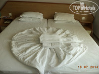 Отдыхала с ребенком с 15-25 июля 2014г. Т.к. прибыли в 15.30, заселили сразу в номер на 4 этаже. В номере все работало, даже Wifi брал, можно было смотреть фильмы. По TV нашли 4 русских канала. Питание разнообразное, только завтраки скудноваты, однако это компенсировалось большим выбором тортиков и фруктов. Также на террасе делали вкусные блинчики и омлет, а капучино из машины -бесподобно! Посетили рыбный ресторан и пиццерию. Всё было вкусно кроме краб-салата и форель "слегка" подгорела.. Полотенца меняли каждый день и даже выкладывали фигурки ( на пол ни разу не бросила). Персонал в отеле очень доброжелательный. Всегда здоровались при встрече с улыбкой. Наблюдала картину: родители оставили 3-летнего ребенка на анимацию и ушли в неизвестном направлении. Ребенок через 5 минут решил найти маму, не найдя в ресторане расплакался. Официанты вместо того чтоб быстрее убрать посуду и уйти, с ним разговаривали и ходили по ресторану за ручку, искали родителей, кот.появились только к концу анимации.