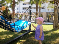 Есть мини –аквапарк . Папа с сыном там иногда зависали. Есть домик с лабиринтом и сухим бассейном для малышей. Но мы туда не ходили. Только на мини-диско. Анимация для взрослых постоянно,но не навязчиво(дартс,поло, степ, танец живота, игры какие-то, шоу вечером…)Мы тоже туда не ходили. Пропадали на море и ездили на экскурсии. Бассейнов 3 для взрослых, 2 для малышей, и один закрытый с прохладной водой