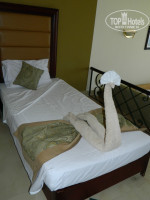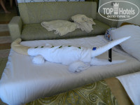 Уборка- претензий не было, видимо в улучшеных номерах и персонал соответствующий, сначала в смену был уборщик Махмуд по-моему (фото прилагается) крутил всякие поделки потом другой но тоже норм, уборка производилась где-то 11.00 полы протирали, несколько раз заходил после уборки- полы влажные- в том числе под кроватью и на балконе, несколько раз когда 1$ когда 2$ , раз ради прикола 100 руб- накрутили какоето чудо юдо с использованием туалетной бумаги, минибар пополняли регулярно правда по непонятной системе, количество соков, воды, колы(фанты, спрайта) варьировалось но всегда были в достатке, из неприятностей- у дочери из рюкзака пропали 20$ (сами виноваты не проследили чтобы в сейф положила) - будьте осторожней - народу шарахается-один убирает, второй минибар пополняет, третий пляжные полотенца меняет,