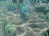 Пляж - об отличном море с рыбками уже много написано, на верхнем ярусе- уровень 3-этажа на песке лежаки в любое время заполнены макс 20% , возле моря внизу у понтонов при желании до 8.00 можно найти лежаки под зонтиками, позже свободные как правило на солнце, во время прилива можно зайти с берега метров на 5-10, в остальное время купание с понтонов, на территории неработающего отеля левее, у пристани дайверских кораблей хороший песчаный вход для детей, шириной метров 20 в на расстоянии метров 30 в море пологий вход до глубины 1,50 м дальше резкий обрыв, рыб не меньше чем у кораллов