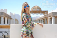 Территория ухоженная зеленая складывается впечатление что ты находишься в оазисе а вокруг пустыня. На территории находится 2 бассейна один так называемый лягушатник народу на нем не много и он подойдет для людей которые хотят побыть в тишине, полежать позагорать. Второй бассейн основной на его территории находится бар по системе все включено.и так же можно поиграть в волейбол на воде, так же рядом находится ресторанчик итальянской кухни он за отдельную плату, но с 16 до 17 в нем раздают закуски в виде бургеров с картошкой фри. Так же на территории есть магазин сувениров, в нем я бы не рекомендовал что либо покупать. Проще выехать в город и купить все необходимое. так же есть маленький магазин продуктов там можно купить сигареты воду и другие мелочи, но цены там намного выше чем например в городе.