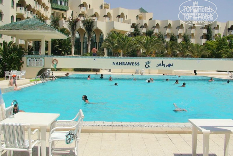 Ездили семьей (2 взрослых человека и двое сыновей 13-ти и 17-ти лет), с 7 по 17 августа. Сравнивать не с чем, за границей отдыхали в первый раз. Первое (и впоследствии укрепившееся) впечатление от отеля - очень красивый, чистый, с приличными номерами ( у нас было два 2-х местных номера - один с видом на главных вход в отель, другой - с видом на бассейны). В обоих номерах боковой вид на море. Очень много зелени. Персонал очень приветливый, многие если не говорят, то как минимум, понимают основные фразы на русском - языковой барьер НЕ ОЩУЩАЛСЯ. Питание полупансион, завтраки довольно однообразные, но выбор есть, ужины очень разнообразны, мясо, морепродукты в различных сочетаниях, про овощи-фрукты и говорить нечего. Всего, чего хотелось, попробовать не удалось - отпуска не хватило:-) Анимация не очень, отель специализируется больше под талассотерапию, чем под активный отдых. Детям в отеле было скучно, поэтому мы "спасались" экскурсиями и самостоятельными походами в Хаммамет. Общее впечатление от Туниса в целом и от отеля в частности - очень положительное!