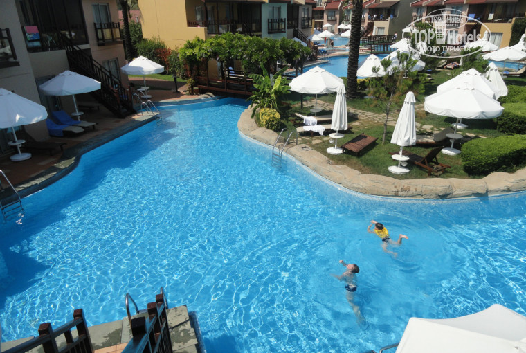 5. Анимация: каждый день часов с 10 и до 17 ч. - в бассейне и возле него постоянно что-то происходит, аэробики, шейпинги, йоги, восточные танцы, дартс, стрельба из пневматики, лука, беганье по дорожке расстилаемой в бассейне (кто дальше, добежит), крокодил (бег с препятствиями на надувной конструкции), ватерполо, на серфингах кто кого перегребет руками и т.д., короче, кто приехал не "валятся" аниматоры понравятся, самые веселые были Ahmet, Gokay и Кристина. Детками тоже занимались постоянно: то они сами лепят, а потом им пекут печенье, то они играют во врачей (вокруг бассейна всех "лечат" льдом, потом забинтовывают туал. бумагой) отдыхающих, то в собственно изготовленных одеждах, типа привидения, всех ходят "пугают" короче очень занятно! Аниматор Руслана возилась с ними как со своими! Привет всем, и конечно Бурхану, кто играл в дартс тот поймет!