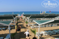 Расположение нормальное, до пляжа идти минут 5. Дорога на пляж с горы, обратно в гору, поэтому тем людям, кому тяжело ходить тут лучше не селиться. Пляж примерно 50м шириной, песчаный, с пологим спуском в воду. Шезлонгов хватает всем. Рядом организован водный спорт (банан, бублик, скутер, парашют) и волейбол. На пляже можно попить воду, сок и кофе. Ресторан недалеко на горке, поднялся и там уже все остальное, можно даже обедать.