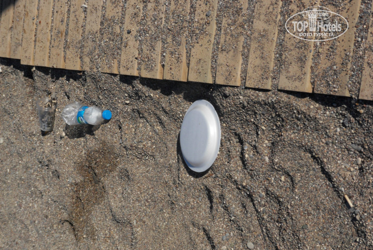 -На пляже грязно, везде мусор. Уборка пляжа заключается в том, что расставляют на место лежаки, которые за день растащили отдыхающие. Везде по нескольку дней стояла грязная посуда из буфетов и баров с остатками еды, которую руссо туристо таскало на пляж в огромных количествах. Песок на пляже весь усыпан окурками, так как около лежаков нет в достаточном количестве урн для мусора. Поэтому курящие отдыхающие окурки просто разбрасывают вокруг. Не пляж, а большая пепельница и помойка.