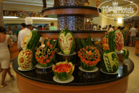 Питание очень понравилось. Главный ресторан “Гармония”, в центральном корпусе, большой, с двумя открытыми террасами со столиками. Удобный ресторан “Анатолия”, при нем бар, с большим ассортиментом коктейлей, в отличии от пул бара и главного ресторана. Блюд большое разнообразие. Была в изобилии рыба, мидии, курица, индюшатина, говядина, телятина, баранина. Один раз подавали раков. Всевозможных овощей, гарниров и выпечки, на все вкусы. Много сладостей всяких, мороженое. Хорошее кафе-кондитерская под переходом. В кафе возле главного бассейна варят отличный турецкий кофе на песке. Под главным рестораном, с другой стороны бассейна, кафе типа “фаст-фуд”, можно себе гамбургер слепить с картошкой фри. В кафе в луна-парке готовят вкусные питы с начинкой. Удивило качество фруктов, очень вкусные и спелые арбузы (возможно удачно попали на сезон), не ел таких никогда, черешня супер и вкусный виноград с нектарином. Только слива, видимо еще не подошла, зеленоватая была. Выбор алкоголя так же приятно удивил, помимо напитков местного производства, были представлены все импортные бренды, что мне знакомы. В лобби баре лучшие коктейли и бармены, реально жонглеры.