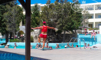 В отеле хорошая анимация!Кто прилетел Натали турс могут записать детей в мини-клуб от2 до 8 лет- Зебра,от 8 до 12 лет -Пираты.Младшую мы никуда не записывали,а вот старшую отправили в Пираты.( нужно подтвердить,что именно от этого тур оператора и заполнить анкету).Дочка уходит в 10 утра,приходит на обед,ужин и ночной сон.Работают с 10 до 22 с небольшими перерывами.Мэри и Джулия -русские девушки которые могут справиться с любым ребенком!Так что вы можете не волноваться и со спокойной душой доверить им дитя.Кстати с расписанием их досугов вы можете ознакомиться. Бассейны это отдельная тема здесь их 8 .От 40 см до 160 см.В одном из детских стоит корабль из мачт " идет дождик", с палубы можно скатиться на водяных горках.Рядом водянной массаж.Много сооружений с водяными струями ,попробуйте!!!я стояла полчаса-это очень приятно хотя по началу от напора было больновато мышцам.Бесплатный массаж!!!после такой процедуры еле доползла до лежака и заснула!Кстати-дневки,они же шезлонги ,больная тема этого отеля.Их катастрофически не хватает.Занимают их с 6 утра.В течение дня маловероятно найти свободный, не сломанный лежак.Так же некоторые Европейские личности ,пока вы отошли пообедать,в наглую могут скинуть ваши вещи и потом с умным лицом говорить,что не понимают о чем речь-это напрягало больше всего.