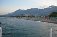 Пляж - галька , море чистое ,удобный заход в море. Есть пирс ,под которым плавает очень много рыбок, можно взять с ресторана булочки,хлеб покормить их. Лежаков на пляже хватает на всех , не нужно идти в 7 утра и занимать места. Полотенца выдают один раз в день.
