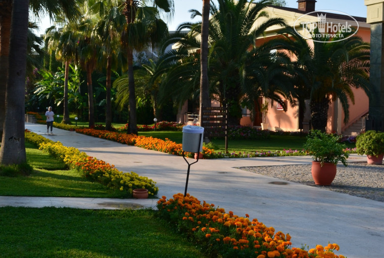 Территория отеля - очень ухоженная ,чистая ,зелёная ,если где-то листик упадет ,сразу всё убирают. Действительно,большой плюс отеля - это чистота,не придраться. В отзывах жалуются та маленькую территорию отеля ,если Вы любите большие отели,зачем ехать сюда ? Ведь читаете отзывы,смотрите фото,написана площадь отеля. Как по мне места для прогулки достаточно.Здесь царит уют. Но каждому своё.