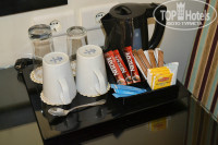В номере есть все для приготовления чая, кофе - чайник. кружки, сахар и т.д. Также обновляют пакетики чая/кофе/сахар каждый день.