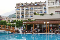 Переехали в этот отель когда поняли что не можем полноценно отдыхать в 3*, выбирали отель через booking по принципу чтобы недалеко и подешевле. Отель нам понравился: небольшой, уютный, красивая территория, хороший бассейн. Чистый пляж с мелкой галькой и всем всегда хватало лежаков. Еда вкусная и достаточно разнообразная(смотря с чем сравнивать конечно) – мы всегда находили что-нибудь по своему вкусу.