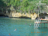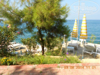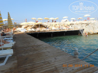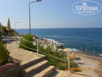 Пляж -первая линия, устроен в виде бухты . Есть и песок (пологий вход без камней - подходит для маленьких детишек и любителей просто поплескаться), есть пирс с деревянным покрытием (спуск по лестнице - глубоко). С пирса со стороны моря можно нырять с масками кормить рыбок, с рук, хлебом)))).,.