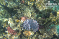 Участок моря, принадлежащий отелю тоже его минус. Море красивое, рыбок много, но плавать именно на пляже отеля проблематично: мелко, травмоопасно - сразу идёт риф + постоянное скопление в воде большого числа кричащих арабов (до 30 - 40 человек), которые стоят (именно стоят, а не плавают) там часами. Справа и слева от пляжа Дельты прекрасные пляжи соседних отелей, - плавали там, но там бдил охранник и отлавливал наших отдыхающих, было неприятно, а купаться-то хочется – так и сражались с ним за место в море… Если бы было невозможно плавать в зоне других отелей – отдых был бы однозначно испорчен.