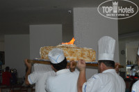 Были дважды в рыбном ресторане. Записаться можно туда абсолютно в любое время у девушек на гест-релейшен (в корпусе В), кстати все очень милые девушки, на все вопросы отвечают с улыбкой и удовольствием)). Меню в рыбном ресторане абсолютно такое же, как было и в прошлом году. Получается, что за 2 года мы перепробовали все виды рыбы, которые там предлагаются)) Могу посоветовать: самая вкусная и нежная - морской лещ, морской окунь тоже вкусная рыбка, но не такая нежная, зато там кости крупные, кушать удобнее, остальная рыба - это "селедковые"))). В первое посещение народу было мало, обслуживание было очень быстрым, рыбу, основное блюдо, принесли минут через 40. Во второе посещение народу было уже много, и рыбу подали часа через полтора. Нас это нисколько не расстроило, торопиться нам некуда - сиди себе спокойно, кушай другие блюда, любуйся закатом, музыку приятную слушай))