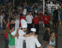 Про питание можно писать бесконечно)) Все очень вкусное и свежее! Во время обеда и ужина в ресторане ВСЕГДА были повара во главе со своим "шефом" - он лично следил за тем, чтобы шведский стол был полон, и повара только успевали наполнять заканчивающиеся блюда)). Убирают со столов не просто быстро, а практически молниеносно, всегда с улыбкой (!) Нам желали приятного аппетита, иногда те, кто немного говорит по-русски, спрашивали как дела и настроение)). В течение 13 дней, которые мы там пробыли, ни разу не повторился суп-пюре, а подавали его и на обед, и на ужин!)) Очень порадовало то, что количество гарниров было больше, чем в прошлом году, добавились блюда из картошки (это и пюре - да, порошковое, но вкусное, и отварная, и запеченная, и круглая в фольге), мясо и овощи приготовлены разными способами, рыба была в двух вариациях - на гриле и в кляре (может еще какая была, но я не большой любитель рыбы, поэтому могла и не заметить), очень понравился куриный шницель. А выпечка какая! На завтрак понравился рулет с шоколадом и орешками (правда, он исчезал с подносов просто молниеносно))), на обед и ужин кроме восточных сладостей были очень вкусные бисквитные торты с заварным кремом и фруктами, несколько раз давали профитроли (тоже с заварным кремом) в шоколаде. А по четвергам на ужин повара (4 человека) на плечах выносили огромный горящий торт-мороженное! это было очень зрелищно! Они проносили его по всему залу, потом снова выходили на улицу и там уже угощали. Мы насчитали в нем 8 сортов мороженного, которым прослаивались бисквитные коржи)). Такой маленький праздник))! А праздник Ураза Байрам совпал с турецкой ночью в отеле - это было просто супер! Повара, аниматоры, отдыхающие, гости, которые приехали в тот вечер в отель на красивых авто - все веселились и танцевали под живую музыку в ресторане на улице! Даже шеф-повар отплясывал!))