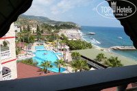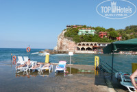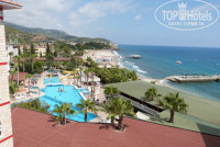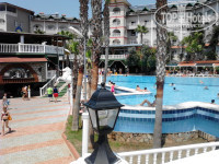 Отдыхали в этом отеле в конце июля,с мужем.В целом всё понравилось.Конечно ко многому можно придраться,но когда едешь отдыхать лучше быть оптимистом.Сейчас,когда читаю отзывы уже после того как сама там побывала,прихожу к выводу что низкую оценку ставят те кто реально ехал в пятёрку.Люди,если вы собираетесь в этот отель и всё ещё надеятесь что вам повезёт,и вы попадёте в "нормальную"пятёрку,не надейтесь,четвёрка как максимум!Это пишут в каждом отзыве,простая обычная еда,как дома:рис,макароны,картошка,салаты,много овощей,немного фруктов-при нас были сливы,дыня,арбуз и виноград,запеканки,тушёные овощи,десерты,что то ещё...Хочется отметить овощной салат с перцем,красный и зелёный нарезан колечками,думала болгарский,оказался острый,сок попал на губы,обожглась,получился эффект ботекса))))))Я не шучу,через неделю всё прошло.Просто будьте осторожней,вдруг чей-то ребёнок захочет салатика)))))Про напитки:чай,кофе,соков нет-только инвайт стопроцентный,вкус моего детства так сказать,так что лучше лимонад,кола,спрайт,фанта,также есть водка,пиво-наверно безалкогольное,вкусное,очень хорошо уталяет жажду при такой жаре и не более,в баре (он работает с 19.00 до 23.00 бесплатно)делают разнообразные коктейли.По-поводу перекусов,многих интересует этот вопрос,он есть!У бассейна мини бар с 16.00 до 17.00 булочки,кексы и напитки,так что с голоду не умрёте.Очередей до открытия ресторана за все 7 днй не видела ни разу,но столики занимают быстро придите к 20.00,и толкатни такой не будет,ну не съедят они всю еду,НЕ СЪЕДЯТ!Официанты очень стараются,это сразу бросается в глаза,трудятся как пчёлки,ну разве они виноваты,что туристов много а персонала мало.Теперь про номер:никаких денег в паспорт не вкладывали,ничего ни у кого не просили и заранее не бронировали:получили отличный номер на 6-м этаже с видом на бассейн и собственно само море.Кондей висел далеко от кровати,так что работал всю ночь,в номере была постоянно приятная прохлада,балкон почти не открывали.Кто-то писал что плохо работает холодильник,не забывайте,когда вы уходите с номера и забираете с собой карточку-ключ,электричество в номере отключается,соответственно и холодильник тоже.По приезду у нас в холодильнике было 4 маленькие бутылочки с напитками:2 минералки,1 типа кола и 1 типа фанта-это бесплатно,пейте или забирайте с собой,также 1,5 литра воды так же бесплатно.Внимание: вода в отеле бесплатная,не бегите покупать в магазине,как это сделали мы в первый раз)))))Система такая у вас закончилась вода,ставите пустую бутылку на стол,приходит уборщица,видит пустую бутылку,забирает,ставит целую.Вообще очень удивило то что в отеле воды нет в свободном доступе,ну скажем хотя бы во время обеда,что бы каждый мог подойти и взять столько сколько ему нужно,всё таки система там-всё включено.На счёт уборки,как показалось убирали каждый день,хотя мы в общем то и не мусорили,что там убирать то...Немного о море: пляж-очень мелкая галька,в принципе чистенький,есть свой пирс,наш пляж самый спокойный т.к. в конце пирса в море лежат плиты вряд-волнорезы.Можно прогуляться до конца пляжа,там у скалы есть какая то кафэшка.Лежаки днём не занимали,купались в море и уходили,а вечером в принципе всегда находили свободные где можно было полежать.Территория:небольшая,красивая,можно ходить в соседние отели,Грин хилл и Паша бей,но купаться и куш