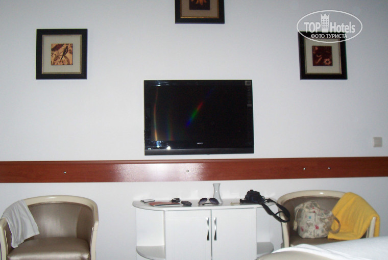 Сам главный шестиэтажный корпус большой, но очень уютный. Разнообразные магазинчики и парикмахерская. Номер достался большой без всяких доплат. С балкона открывался отличный вид на море, пляж, просто сказка. Номер убирали ежедневно. Сейф в номере платный 2$.