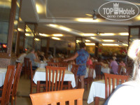 Еда. Кормили "на убой", разнообразная. Из мяса тушеная курица, пару раз жареная, разнообразные гарниры, зелень, овощи-всего навалом, из фруктов- арбузы, дыня, сливы, виноград. Главный ресторан большой и найти место было не проблемой. Правда соки были растворимыми, это минус. Апельсиновый Фрэш был на завтрак - за 1$.