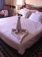 Номер вполне симпатичный, мы жили на втором этаже. Из окна был вид на море. В номере все работало, белье было чистое, полотенца постоянно меняли, душевые принадлежности обновляли. Уборка производилась лишь только тогда, когда висела табличка на двери уборка. По пустякам не беспокоили. За чаевые лепили фигурки. Животные в номерах отсутствовали ни тараканов ни мух ни комаров замечено не было.