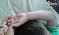 Хочу поделиться бедой, которая постигла нашего ребёнка после отдыха в Турции, путёвку брали горящую и прочитала отзывы об отеле за пару дней до вылета, писали о вирусе коксаки, которым болеют в Турции детишки, не придала этому значение, думала единичный случай, деньги за путёвку заплачены и очень хотелось отдохнуть, мы решили, что никакого бассейна, где дети кишат, никаких анимаций, поменьше контактировать с детишками и всё будет ок, так и отдыхали, утром море, после обеда море и вечером опять ходили гулять на море, за столом каждый раз протирала руки спиртовой жидкостью, как только он брался за стул или стол, в общем максимум следила, вставляля для профилактики свечи кипферон, зная про какой то неизведанный вирус, нашему малышу почти 3 года, через 4 дня у него полились сопельки, потом появился кашель, всё протекало без температуры и безобидно, в день отъезда, в день отъезда в автобусе поднялась высоченная температура, сбить её я не могла, от жары растаяли все свечи, вылет задержали на 7 часов, по телу пошли прыщи на руках, ногах и попе, когда приехали домой, прыщи стали выпуклые и заполняться жидкостью , страшная картина, но на след день их стало ещё больше, а сегодня вообще не могу на него смотреть, всё покрылось волдырями вокруг рта, руки ноги не просто в единичных волдырях, а на них нет живого места, мессиво, сесть на попу не может, ходить не может, помазать не даёт и это всё с температурой кашлем и насморком, врач сказала вирусная инфекция, про коксаки не сказала, видимо не сталкивалась, но признаки всё на лицо - рука -нога -рот, так что решайте сами, кто собрался посетить Турцию, стоит или нет, у меня перекрылись все положительные эмоции об отдыхе и я б сейчас отдала любые деньги, чтоб мой малыш выздоровил, как и все думала отзывы - это фигня и меня это не каснётся, максимум следила и уберегала, есть предположение, что может передаться через кондиционер, гонялся инфицированный воздух, т к это зараза воздушно-капельным путём передаётся, сам отель по территории и питанию хороший, номера на 3-4, убирались у нас за 10 дней 2 раза, в принципе нас устраивало, если бы не неизбежная болезнь. Без детей достойный отдых, с детьми, призываю, пожалуйста, выберете другую страну для отдыха, не рискуйте, на фото-первый день появления прыщей, на сегодняшний день их в 5 раз больше и они чешутся