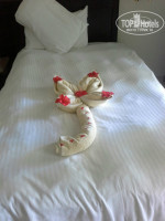 Мебель конечно старенькая, но все целое, ничего не сломано. Убирали каждый день. Уборщик Gomaa каждый день выкладывал разные фигурки из покрывала и полотенец. Было очень приятно! В ванной комнате плохо уходила вода в раковине и была небольшая проблема с электронным устройством для ключа ( щелкал ) и мигал свет, когда вставляли в него ключ. Обратившись в Guest Service Center к Дарье Новицкой, было быстро все исправлено. Даша сама пришла, спросила как у нас дела и все ли нас устраивает. Огромное ей спасибо! Это светлый и очень доброжелательный человечек! Обращайтесь к ней за помощью, она никогда не откажет вам!