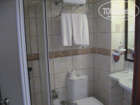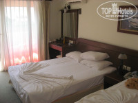 Что касается самого номера. Он маленький. Очень. В коридоре стоит шкафчик с антресолью и плечиками. Полочек нет, так что даже, пардон, трусы, было проблематично пристроить. В ванной душевая кабинка, которая, судя по всему, пережила не мало интересного, туалет, и раковина. Развернуться негде. При моей нехрупкой комплекции, мне было реально не удобно в кабинке - там можно стоять только строго вертикально, корму держать при себе, чтобы не выбить случайно дверь, которая и без того постоянно слетает с роликов. В комнате маленький телевизор с тупыми турецкими мультами (простите меня, если кого то оскорбила, это мое субъективное мнение). Окна номера выходили частично на бассейн нашего корпуса и частично на аниматорскую зону другого отеля.
