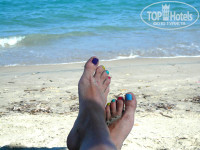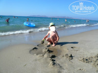 Пляж.полотенца дают за депозит 10 евро, замена -1 евро. Мы меняли 2 раза. Шезлонги и зонтики на пляже платные - 5 евро 2 шезлонга и зонт на весь день (дают чек). Зато не нада бежать в 7 утра занимать место))). Бар на пляже платный. Море песок-песок, оч далеко достаточно мелко, по плечи человеку ср.роста.