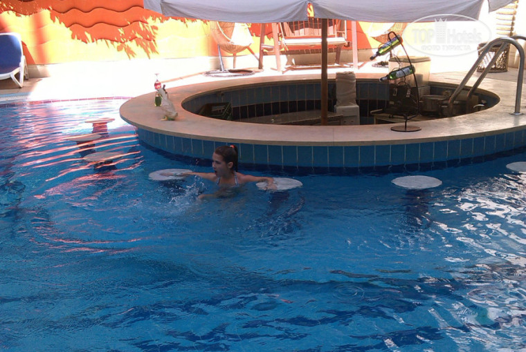 На территории отеля находятся 3 бассейна с баром, лежаками, столиками. Wi-Fi в холле как на первом, так и на втором этаже. В баре у бассейна работают очень позитивные и доброжелательные ребята, иногда, даже, отзывчивые. Кстати, когда время All Inclusive в конце пребывания заканчивается, они на это не смотрят и продолжают дальше угощать))