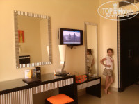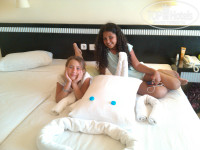 Разместили быстро, номер чистый, уютный, но не посчитали нашу дочку. На следующий день нам принесли еврораскладушку. В номере исправно работал кондиционер, минихолодильник, сейф и телевизор со спутниковыми каналами. Горячая вода была постоянно, ежедневно убирали в номере и меняли полотенца, которые могли не сразу принести, но, мы напоминали и в течение 15 минут их получали. Через день оставляли по доллару "на чай". Взамен дочка получала украшения на кровати в виде различных фигурок.