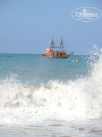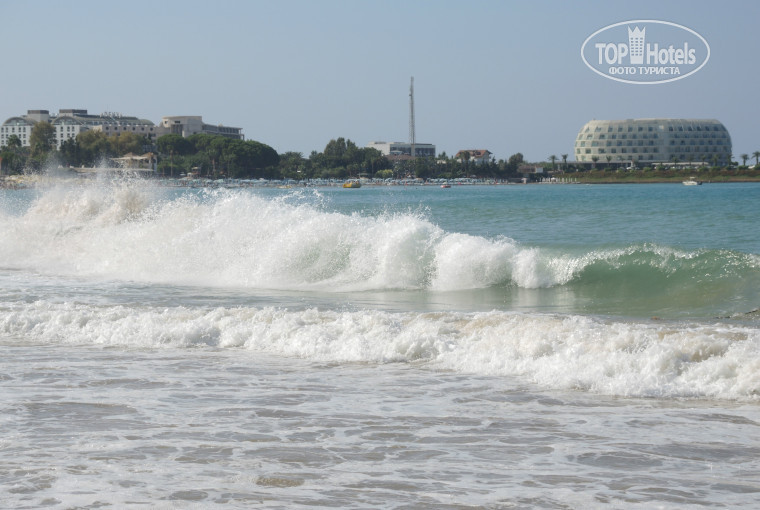 Пляж хороший, песок, лежаков в избытке, заход в море пологий, за пляж ставлю 4, так как поражает количество окурков закопанных в песок, и иногда лежащих на поверхности, но это скорее менталитет отдыхающих, чем недостаток пляжа, так как урн у зонтиков хватает. Пляж в длину с пляжами других отелей составляет около километра, удобен для утренних пробежек и равномерного загара, 35 минут ходьбы в одну сторону и 35 минут в другую.