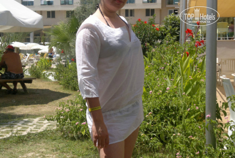 Территория отеля нам очень понравилась. Скромно, красиво, без всяких излишеств. Отличный бассейн, 2 горки. Аниматоры -молодцы, развлекают целый день ( днем- танцы у бассейна, водные игры, акваэробика, вечером- игры. музыка, ну а потом все в ночной клуб!!!!!!!!).