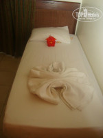 Были в отеле в 00 15,отвели поесть в ресторан,дали много еды,но не особо съедобной,поэтому выпили спрайта с булочкой...При заселении дала 10 дол.,не знаю повлияло ли,но номер достался нормальный,в глубине гардена .