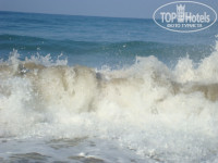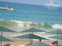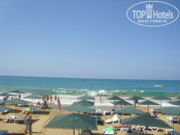 Пляж-море,песок,плавный заход,лежаков всем хватало..все супер...радует глаз очень...в море всегда волны,многим нравится,но для меня это минус,я не очень хорошо плаваю(дней 5 были большие волны,отвлечешься и накроет с головой,нахлебаешься соленой воды,иногда и полезно,профилактика лор болезней).Детям пляж нравится,играют в песок,плавают,но часто видишь,когда ребенка накроет волной,причем хорошо...старший ребенок в первый день расцарапал бок(волной сбило с ног и по песку протащило),так ,что будьте осторожны....я нашла выход,надо или плыть на глубину или зайти примерно по грудь,там легче перепрыгнуть волну,ближе к берегу они сильнее и могут ударить..Так,что это мелочи,море и песок,супер...Видели 2 раза рыбку,на селедку похожа,больше там ничего не водится,иногда камушки попадаются...На 3 день отдыха оставили круги на пляже и их сперли...По берегу гуляет много народу,не скажу,что мешало,но иногда напрягало,как проходной двор (из других отелей,местные,могут купаться на пляже антика,он лучше остальных).В отеле есть номера для гостей с собаками,так их выгуливают по пляжу(видела несколько раз,не постоянно) и они там делают свои дела в песочек,а дети потом играют с ним,это мне не понравилось...Гуляли по пляжу направо,до камней,там отель 5 звезд,и прямо из него в море стекает непонятный ручей,а дальше труба уходит в глубину моря,люди купаются,но запашок тины и тд. есть...
