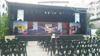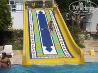 Территория не большая,но есть где прогуляться. Красивая, ухоженная. На улице возле бассейна есть бар, где в любое время можно посидеть пообщаться. В отеле два бассейна (один с горкой).Бассейны чистые. Свободные лежаки у бассейна всегда можно найти,ну или занять понравившиеся места утром. Амфитеатр, где проходили вечерние программы.
