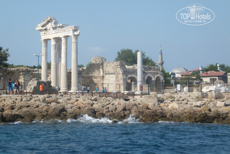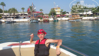 На пляже масса развлечений. К нам каждый день подходили Али, Стас, предлагали экскурсии, парашют, прогулки на яхте, катания на банане, диване и прочее). Экскурсии мы решили брать у нашего гида, поэтому на пляже отказывались, хотя уговаривают они хорошо :) многие берут. Но все-таки мы взяли "черепаха-тур" (брали у Стаса, такой блондин с "каре")). Длится 1 час. Все понравилось (ездили и взрослые и дети). Сначала останавливались и смотрели на черепах, штуки 3 выныривали, затем проплывали вблизи развалин в Сиде, купались в открытом море (вода там чище). Всего лишь один час, но море положительных эмоций. Даже просто от катания на яхте с ветерком)). Стоит 13 $ с человека.
