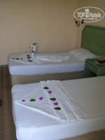 Заселили очень быстро, притом в числе первых, с нами одновременно приехало еще 5 семей, которым пришлось ждать почти до 3 часов дня. Номер был на 4-м этаже - сьют, предоставили на сутки (без дополнительной платы), оплачен был стандарт. На следующий день переселили в другой номер, тоже на 4-м этаже - вид супер. С питанием проблем не было, ни у сына, ни у меня, хотя многие жаловались, что есть совершенно нечего, особенно детям. Выбор был во всем: гарниры, овощи, фрукты, десерты. Обслуживание - отличное, это относится и к горничным, и к ресепшену, и к официантам. Все замечательные, приветливые люди, хорошо говорящие по русски. Пляжи отличные, посещали чаще всего песчаный на территории отеля, но были и на дальнем Инжекумовском пляже. Территория очень ухоженная, очень много зелени.