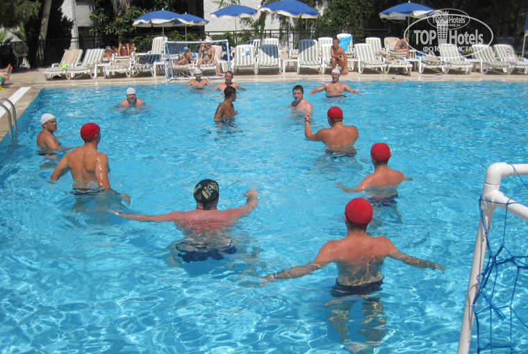 По дороге на пляж есть уютная детская площадка, вот там мы были каждый день. Встретила нас приветливая девушка Алена всё рассказала и показала. Моя девочка просто влюбилась в нее. Теперь каждый день вспоминает и скучает. Мы раскрашивали футболку и рюкзачок. Конечно это не бесплатно, но и понятно. Мы приехали на отдых и там считать эти деньги, ну по-моему не нужно, как некоторые. Ребенок от этих занятий в восторге. А сколько радости, когда их вызывает Алена на сцену, это не передать. И стихи ребята у нее рассказывают, и песни поют, и трюки ребятки показывают. Вот сразу видно человек на своем месте! У бассейна тоже жизнь бурлит, там и водное поло, и дартс, проводят другие задорные аниматоры. Интересные конкурсы около бассейна. Ну а вечером выступает на шоу и сам директор анимации Алекс. И взрослые и дети в восторге от него. Он действительно настоящий шоумен.