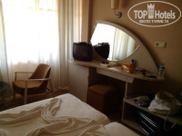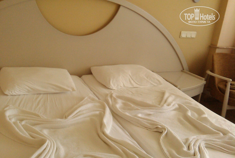 Размещение и сервиc - жирнейшая 2. Мы приехали в отель поздно, около 12 ночи. НЕ предложили никакой закуски, но принесли воды из-под крана(пахла хлоркой). Заселения в номер ждали около часа, видно не говорящий ни на русском, ни на англ. языках, турок ждал мзды. Не дождавшись, скромно потупив взгляд, дал мне и 15-летнему сыну ( 185 см роста ) ключи от одноместного номера с балкончиком , выходящим на столовую, рестораном это место приема пищи назвать стыдно. До 3-х ночи "радушные" хозяева бряцали вилками об тарелки и весело трындели. Короче, после 2-х скандалов нам дали номер с приличной мебелью и кинескопным телевизором, кот. мы не смотрели, потому что нет ни одного рос. канала.