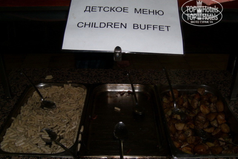 1.Кушать было нечего, (конец августа - начало сентября), мясо (филе курицы) было только один раз, его жарили прямо в ресторане на плите типа гриль. Очередь за ним состояла человек из 50-70, т.к. больше никакого другого выбора из мяса не было. Оказалось что это был самый лучший ужин за все 10 последующих дней. На гарнир рис (иногда холодный и не свежий), пюре картофельное из пакетика, спагетти (тоже на вид мало аппетиные), салатов нормальных ни одного. Салатом у них называется вареные макароны нарезанные и смешанные с какой-нибудь зеленью и кусочками обветрянных огурцов и помидоров. И так далее. Овощей (опять же не особо свежих) на всех никогда не хватало, если кончается поднос с огурцами, то вы их больше не увидите. Далее из мясных продуктов выносили месиво их мизерных кусочков курицы прямо с костями и морковью, кабачками, капустой. Кусочков этих было столько, что из всего подноса можно наковырять максимум 2-3 тарелки обычные. А давали только один-два подноса, вот и считайте, сколько человек в отеле и как там можно было питаться. Люди ходили голодные. Одна женщина вообще рыдала прямо в столовой и ей чтобы не привлекать внимания принесли пару кусков той же курицы. Вино которое дают отвратительно пахнет. Из фруктов были только полузеленые сливы, зеленые сухие яблоки и иногда арбузы. Про выпечку я умолчу, и так уже ясно. Уезжали мы голодные, ночью приехав в 5 утра варили с мужем пельмени. И это не шутка. Теперь лечим желудки после их "шведского стола".