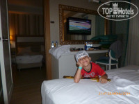 Размещение было на последнем этаже в семейном номере (две комнаты разделённые дверью) - очень удобно. В каждой комнате по две кровати, телевизор (много российских каналов), балкон и кондиционер. Всегда убирались, оставляли много и воды и шампуней (правда мы оставляли чаевые).